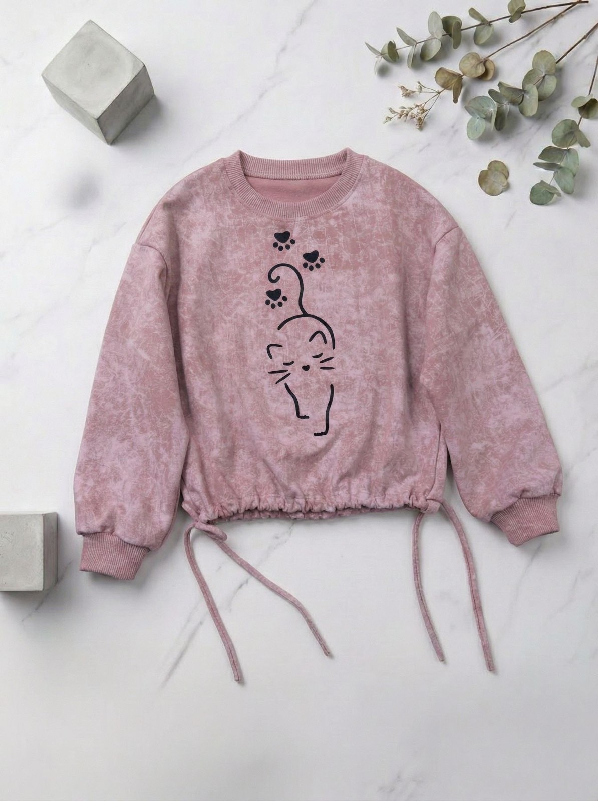 ✅ трендовий -ефект варки, помірний оверсайз та трішки укорочений в стилі кроп-топ, низ на шнурівках якими можна змінювати стиль, горловина та манжети з рубчика👍 ну а котик😻